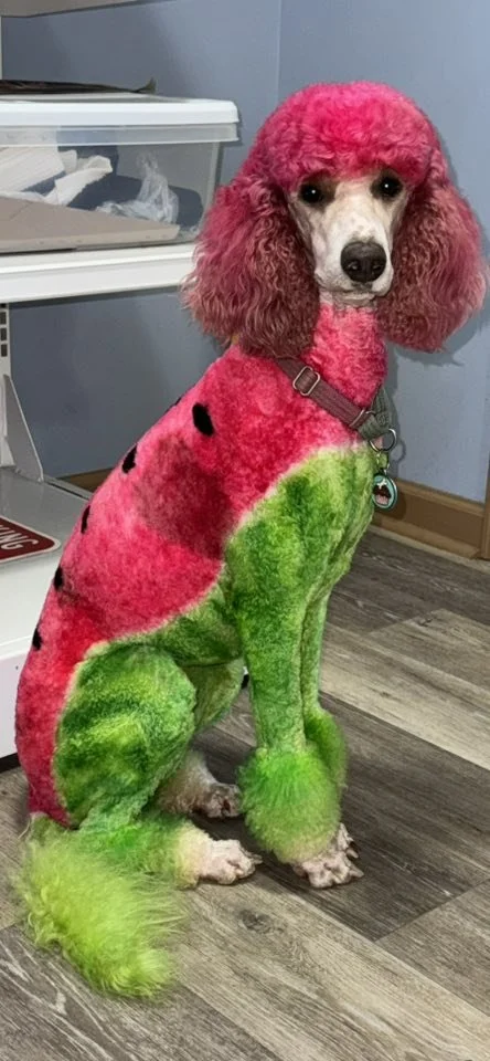 Ask us about hair dye! We can Dye just a tail or make your pup look like a different animal! Prices are given and confirmed during consultation. minimum is $45. Appointments and deposit required. Check out some of our work below: